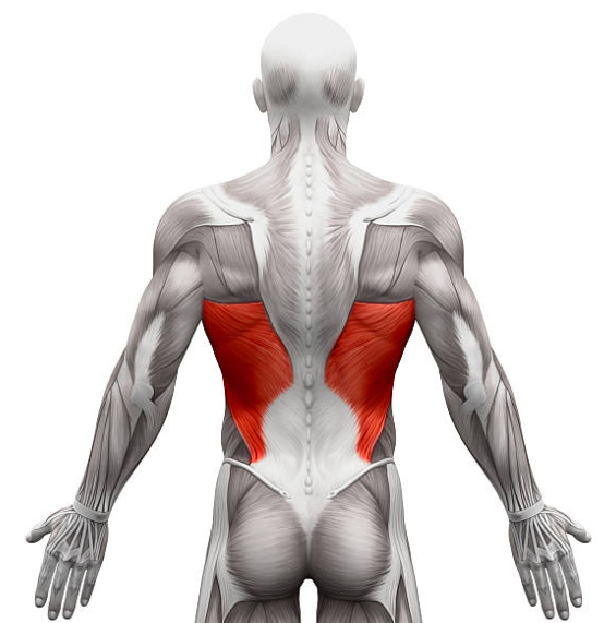 와이드그립을 사용하게 될 경우 등의 상부 광배근, 날개뼈 주위 근육들 위주로