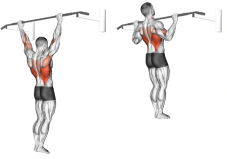 풀업은 광배근과 어깨 근육, 가슴 근육, 팔의 이두 및 삼두근, 복부 근육까지 발달시키며