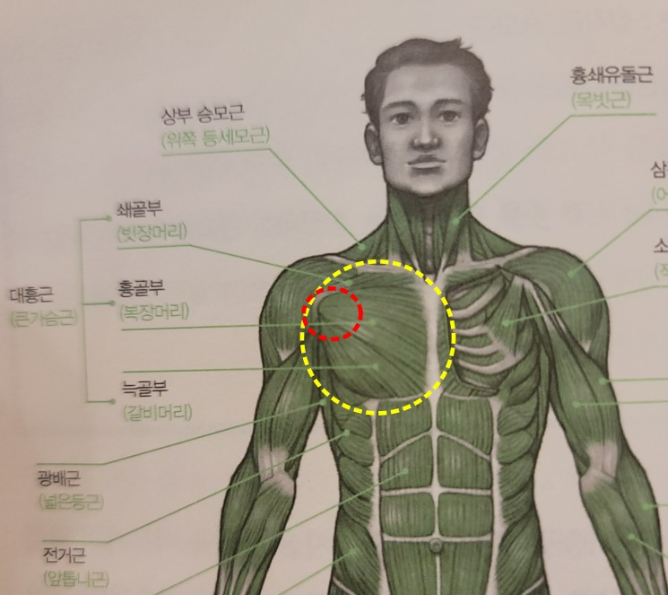 몸의 전면부위인 가슴 근육의 라인을 잡아주어서 처짐없이